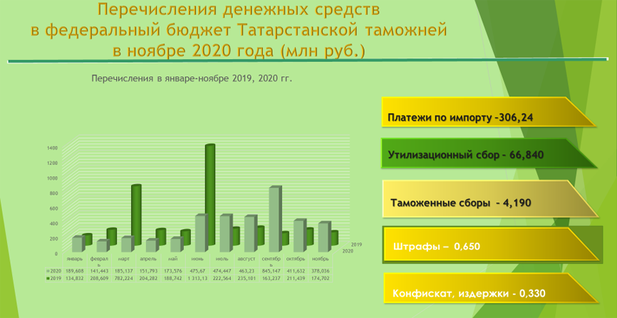 Всего с начала 2020 года Татарстанская таможня направила в федеральный бюджет 3 млрд 875 млн 301 тыс. руб.
