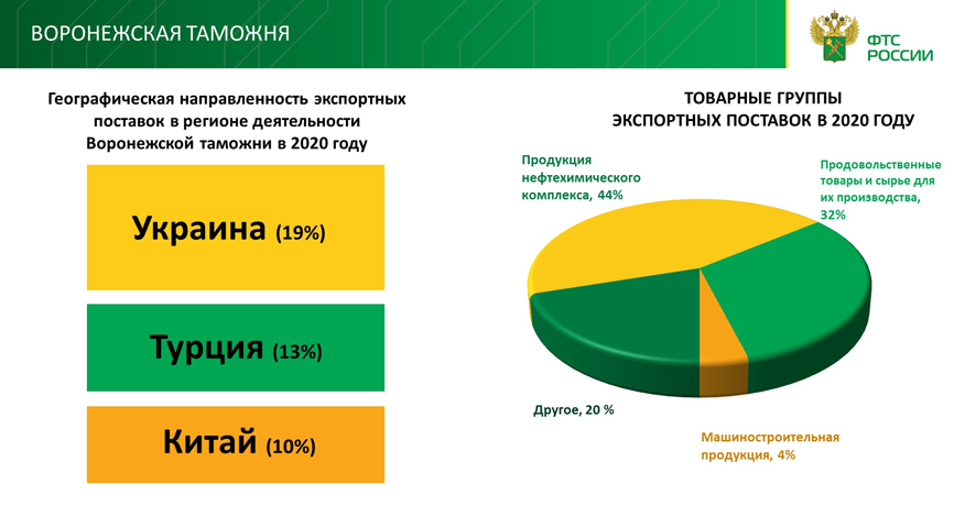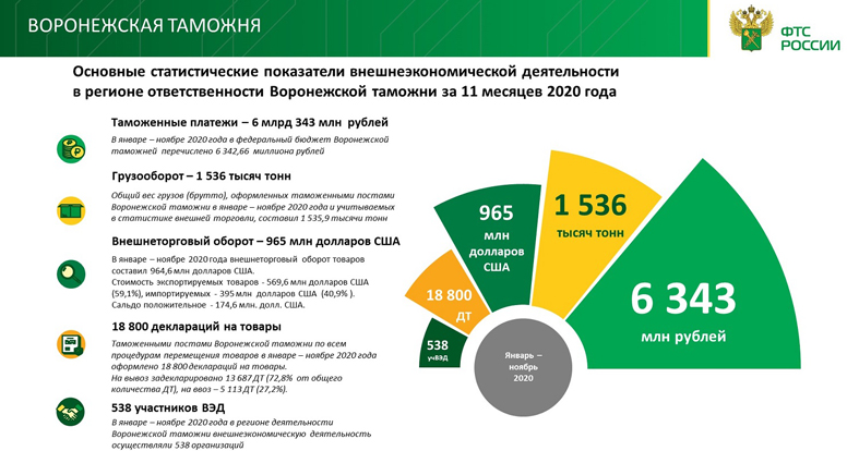 «Среди воронежских организаций, ведущих торговлю со странами ЕАЭС, преобладают импортеры. Внешнеторговый оборот участников ВЭД с бизнес-партнерами Армении, Беларуси, Казахстана и Киргизии в 2020 году составил почти 250 миллионов долларов США, 64% из которых – импортные поставки», - рассказала и.о. начальника отделения таможенной статистики Воронежской таможни Елена Гаврилова.