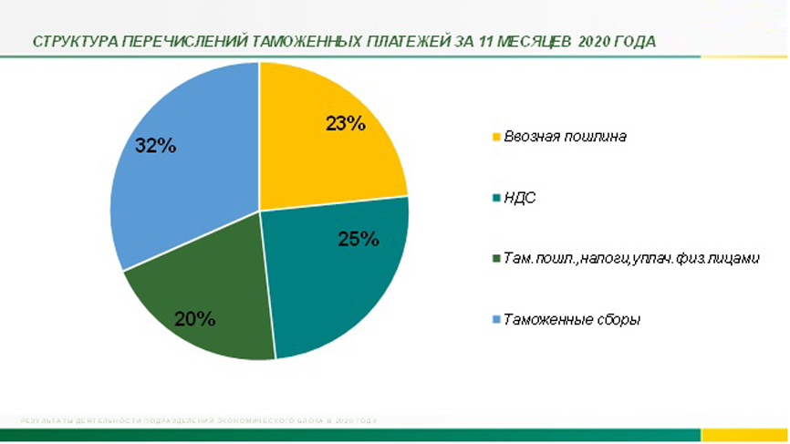 За 11 месяцев 2020 года ЦТУ перечислено в федеральный бюджет – 450,86 млрд руб. Импортная составляющая 446,65 млрд руб., а экспортная составляющая 363,79 млн руб.